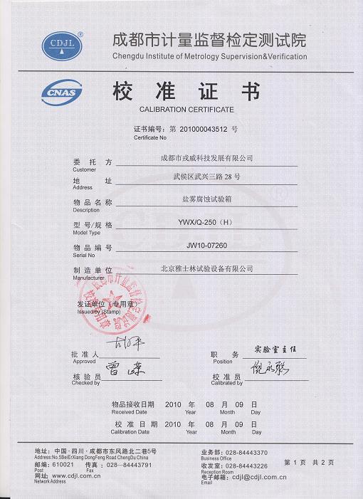 >>鹽霧腐蝕試驗箱校準(zhǔn)證書-成都計量院-戎威科技 |