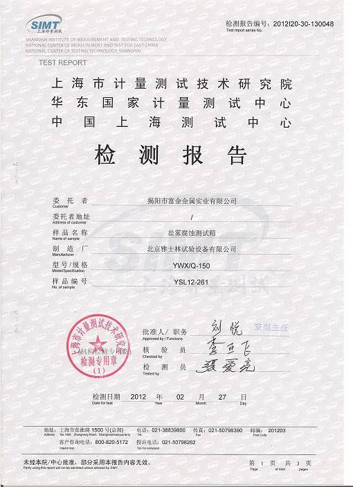 >>鹽霧腐蝕試驗(yàn)箱檢測(cè)報(bào)告-上海計(jì)量院-富金實(shí)業(yè) |