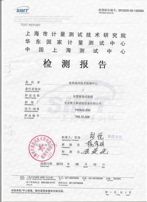 >>鹽霧腐蝕試驗(yàn)箱檢測報(bào)告-上海計(jì)量院-勝利油田 |