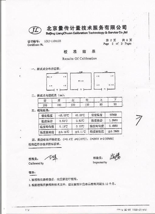 鹽霧腐蝕試驗箱校準證書-北京量傳計量-中安電子 |