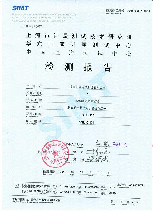 | >>高低溫交變試驗(yàn)箱檢測報(bào)告-上海計(jì)量院-中能電氣 |