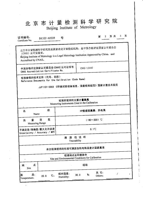 | >>高低溫濕熱試驗箱校準證書-北京計量院-中國電科院2 |