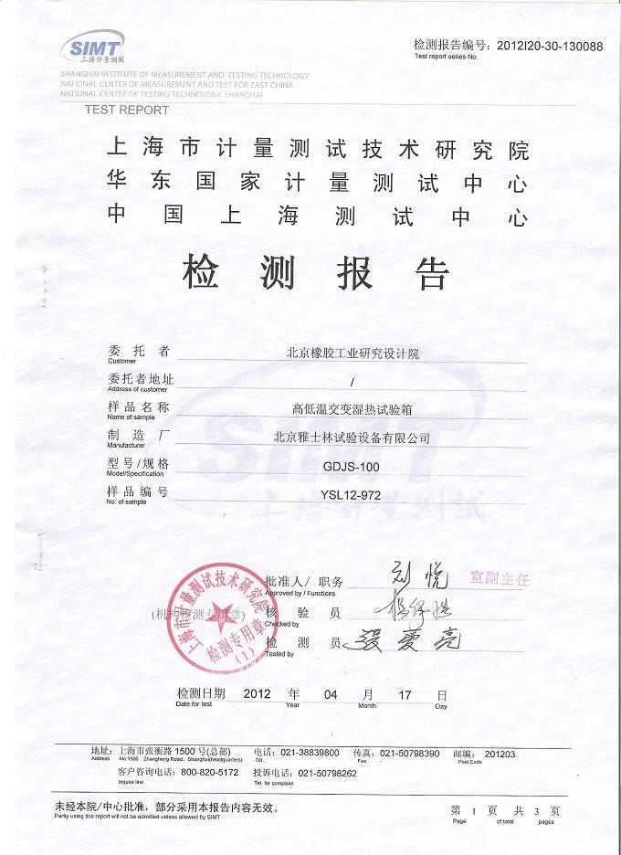 >>高低溫交變濕熱試驗(yàn)箱檢測(cè)報(bào)告-上海計(jì)量院-北京橡膠院 |