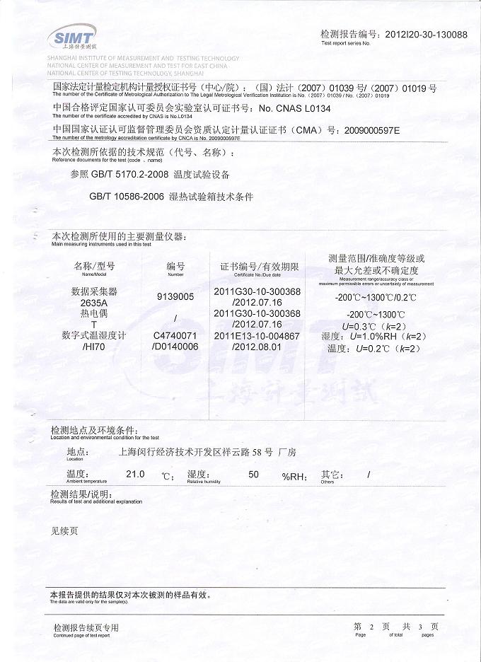 高低溫交變濕熱試驗(yàn)箱檢測(cè)報(bào)告-上海計(jì)量院-北京橡膠院 |