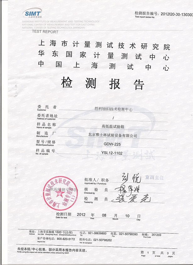 | >>高低溫試驗箱檢測報告模板下載--上海計量院 |