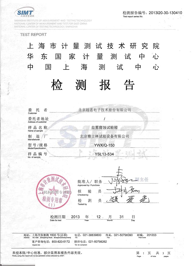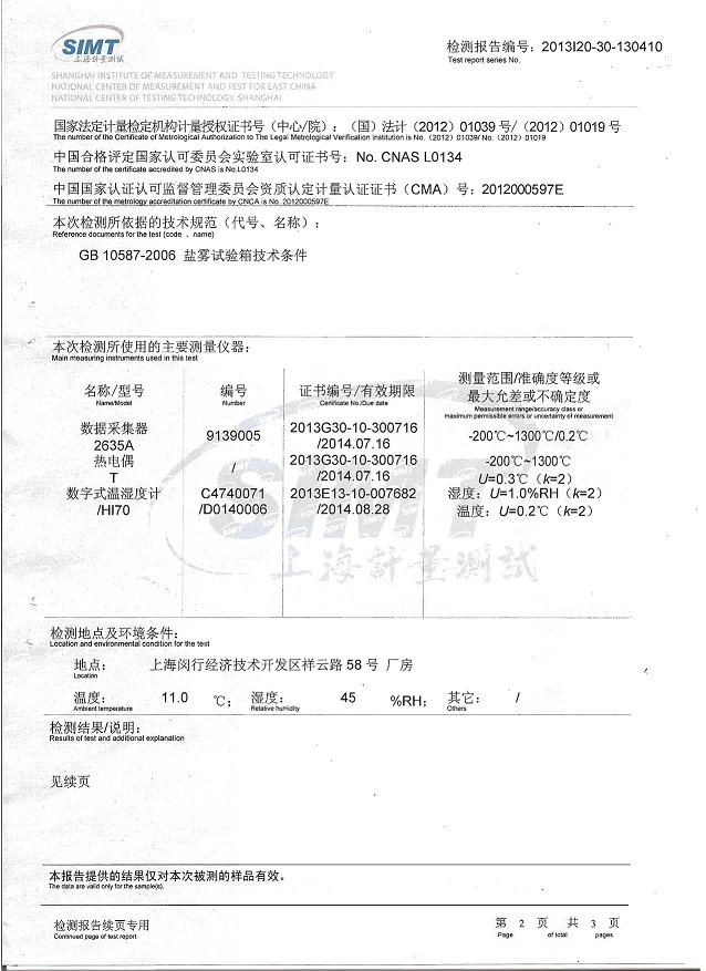 | >>鹽霧腐蝕試驗箱檢測報告模板下載--上海計量院 |