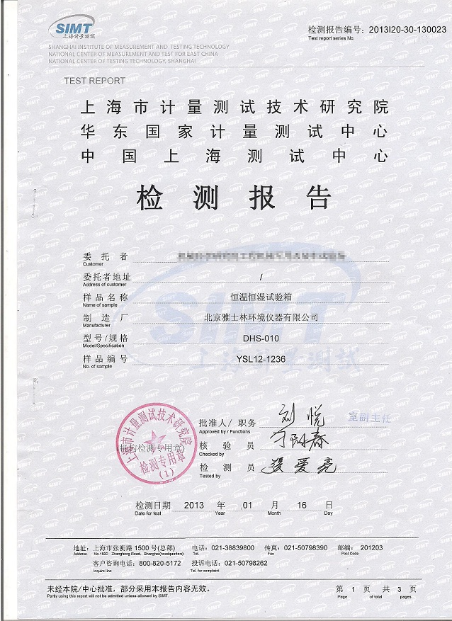 | >>恒溫恒濕試驗箱檢測報告模板下載--上海計量院 |