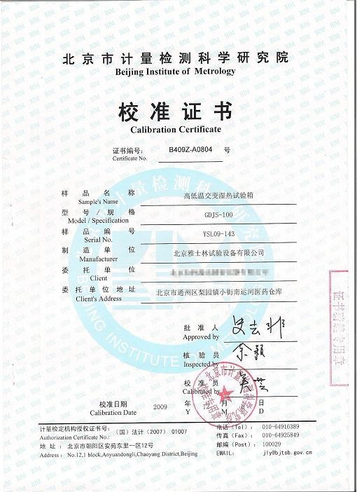 | >>高低溫交變濕熱試驗(yàn)箱校準(zhǔn)證書模板下載—北京計(jì)量院 |