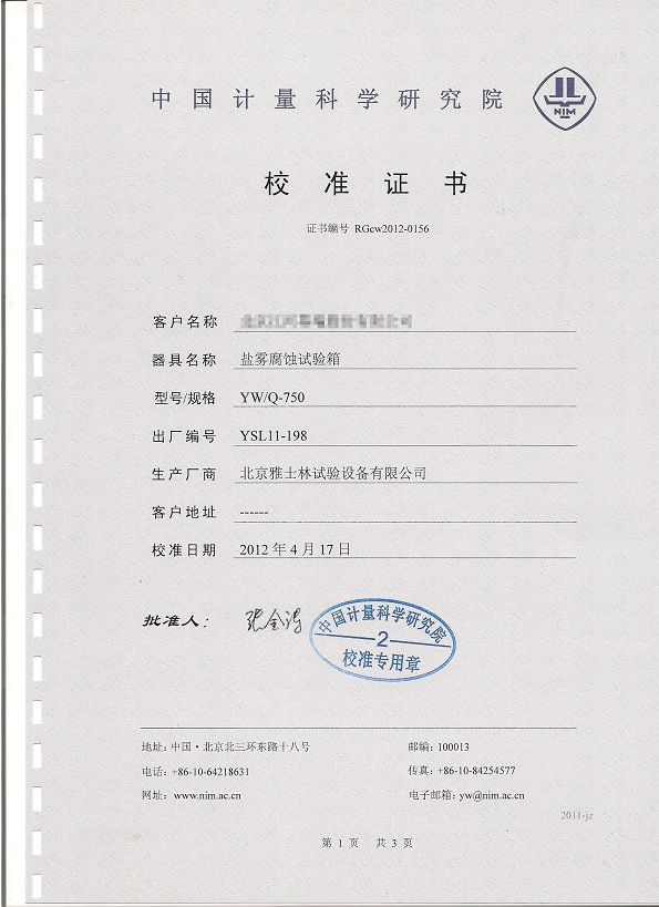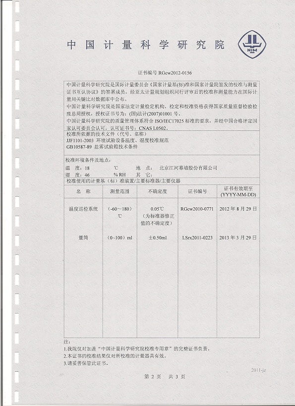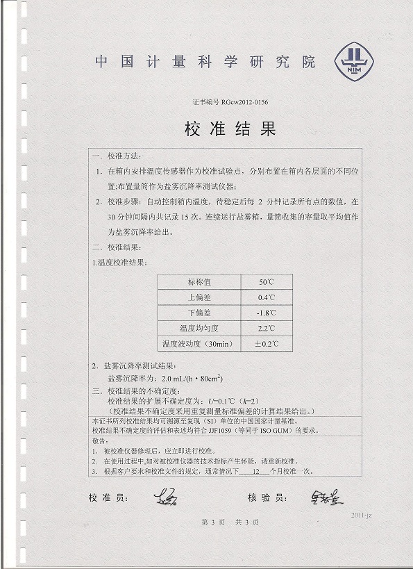 | >>鹽霧腐蝕試驗箱校準證書模板下載—中國計量院 |