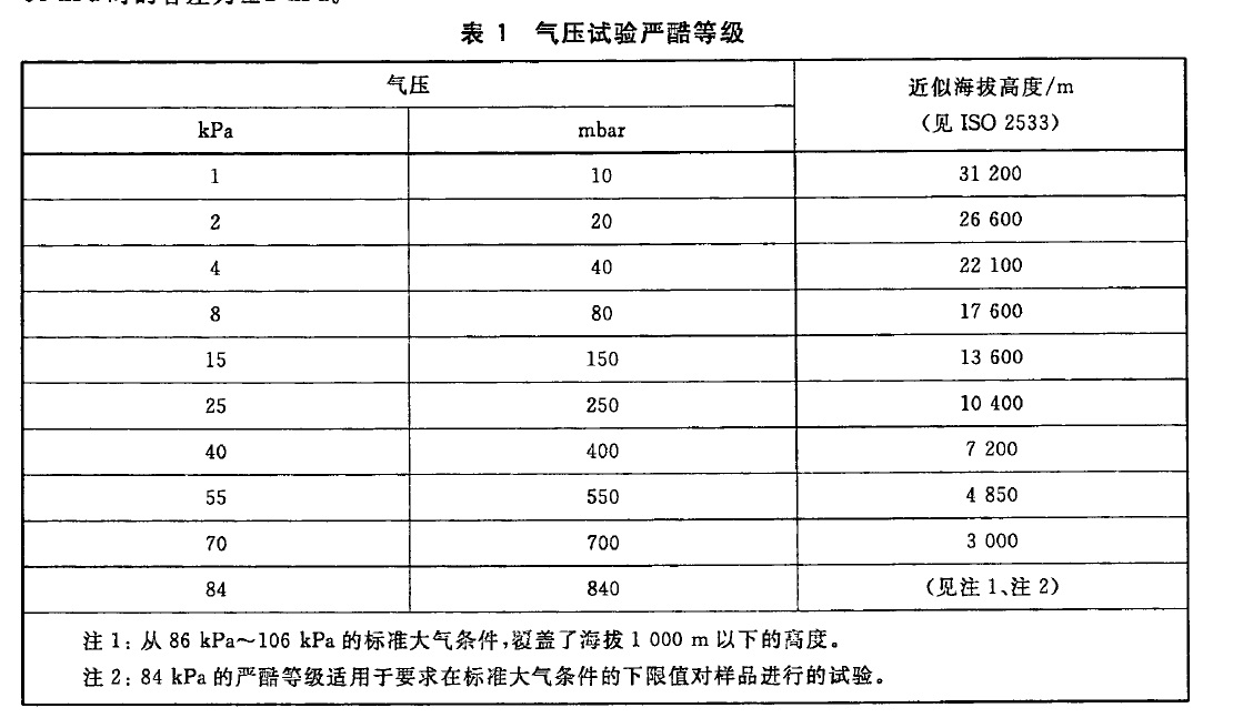 上圖是GB/T2423.21-2008中規(guī)定的氣壓試驗(yàn)等級(jí)。地球大氣受重力作用,離地面越高,空氣越稀薄,氣壓也就越低。在標(biāo)準(zhǔn)大氣條件下,海平面氣壓約為 101.3kPa 。隨著海拔上升,氣壓呈非線(xiàn)性下降趨勢(shì)。這是因?yàn)榇髿獠⒎蔷鶆蚍植,越往高空,空氣分子?shù)量越少,分子撞擊物體表面產(chǎn)生的壓力也就越小。